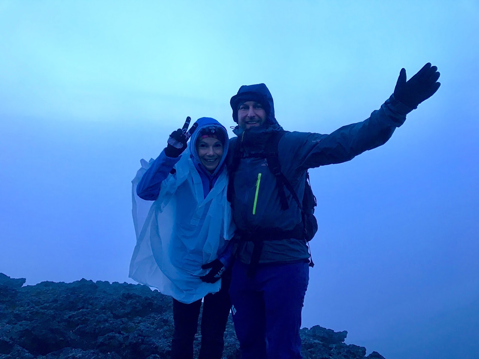 Päivä alkoi valjeta, ja pahin sumu hälveni sen verran, että saatoin nähdä tulivuoren kraaterin reunan kohoavan suoraan yläpuolellamme. Näky oli riemastuttava siitäkin syystä, että viimeistä etappia olimme nousseet aiempaa hitaammin. Alkoi näyttää siltä, että ajoituksemme oli täydellinen ja olisimme huipulla juuri auringon noustessa. Ilahtunut kiipeilytiimimme huuteli kannustushuutoja toisilleen, ja viimein kellon osuessa aamuviiteen nousimme viimeisen kivikon yli kraaterin reunalle.