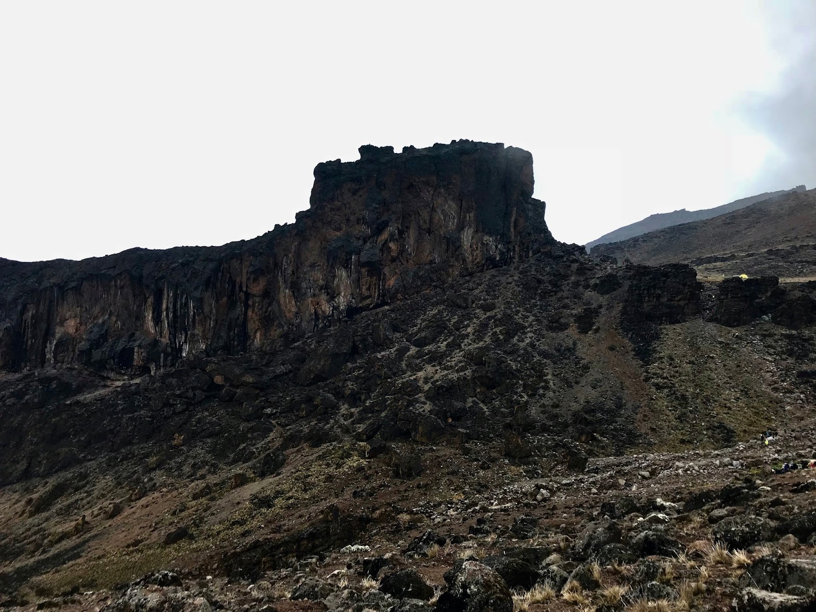 Oma akklimatisoitumiseni tuntui olevan hyvällä tolalla, sillä vasta 4500 metrin jälkeen korkeus alkoi myllätä vatsassani. Silti viimeinen 100 vertikaalimetrin nousu jyrkkää rinnettä monumentaaliselle Lava Towerille (joka nimensä mukaisesti on uskomattoman kokoinen tornimainen laavakivestä muodostunut Kilimanjaron kulmahammas taivaan kantta vasten) otti jo voimille ihan kunnolla.