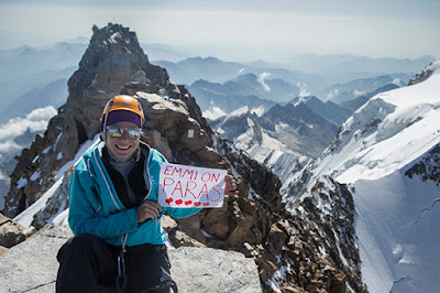 – Tässä seison Mount Everestin huipulla vähän yli vuosi sitten, kun vuosien valmistautumisen ja työn jälkeen onnistuin huiputtamaan maailman korkeimman vuoren. Kuten ilmeeni vihjaa, tavoitteiden saavuttaminen ei aina, – ainakaan juuri niiden toteutumisen hetkellä, – tunnu hyvältä.